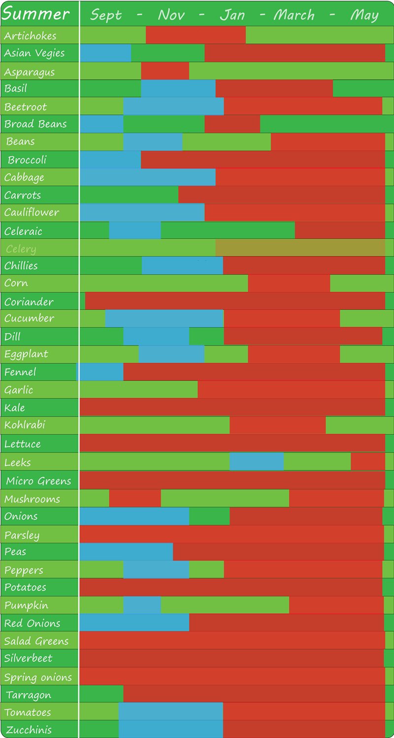 For the gardeners out there, the colour blue denotes when you can buy seedlings from the Market and plant them to grow your own.